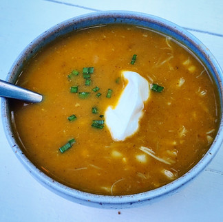 Serve with a dollop of sour cream, yogurt or crème fraîche, if desired and some minced chives.